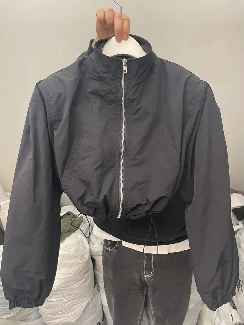 Street Style Cropped Jacket – Fashionable Oversized Women’s Wear