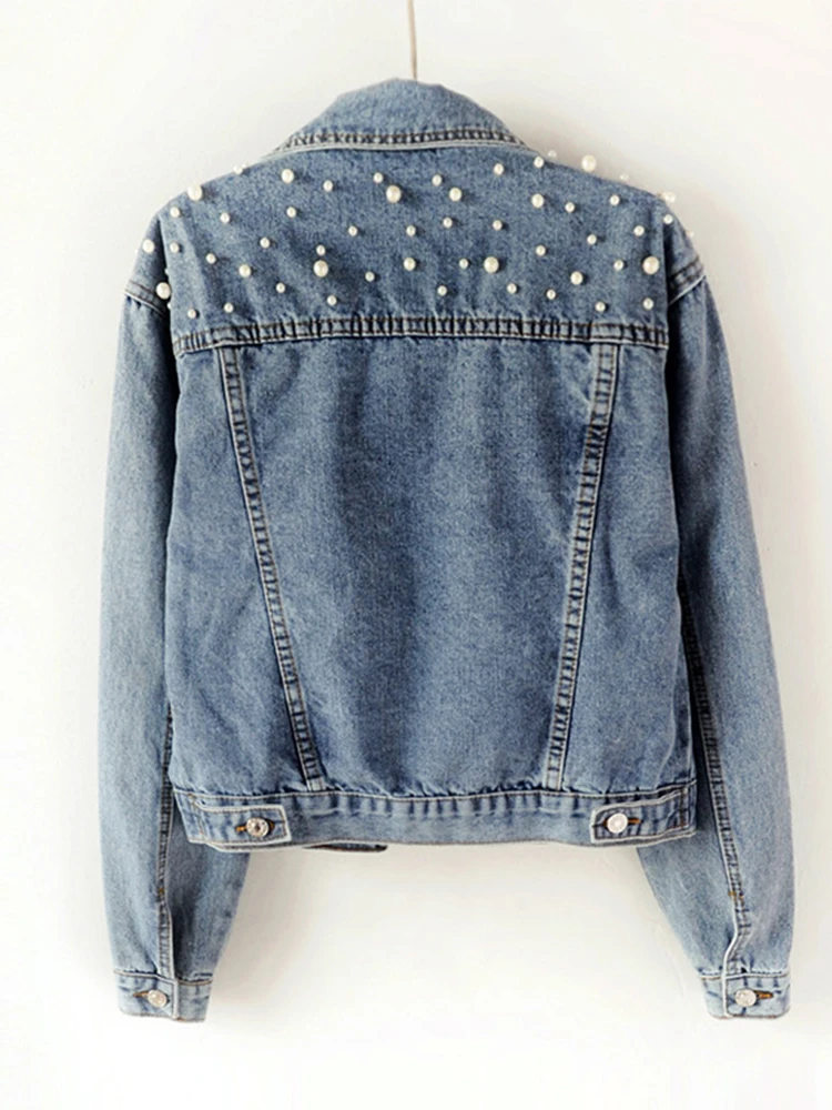 🟢 Classic Style with a Unique Twist: The timeless denim jacket design is elevated by the pearl details, adding a touch of femininity and luxury. 💼 🟢 Functionality and Versatility: With a front button closure and chest pockets, it offers practicality for daily use, being perfect for various occasions. 👜 🟢 Durability and Comfort: The high-quality denim material ensures resistance and a comfortable fit, ideal for all seasons. ⚡ 🟢 Statement Piece: This jacket is the perfect accessory to transform any basic outfit into something extraordinary, ensuring you turn heads wherever you go. ✨