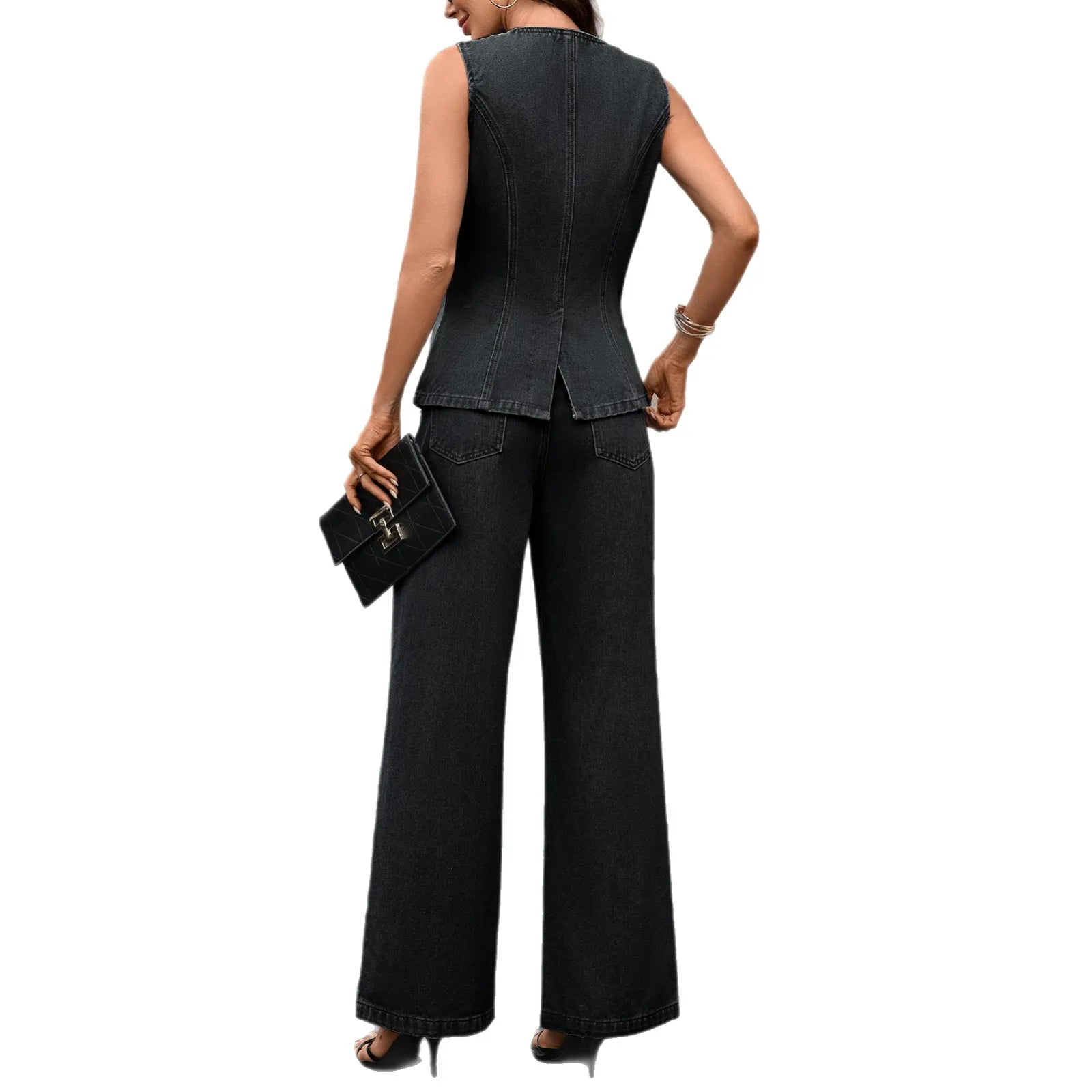 Trendy Two-Piece Set – Sleeveless Darted Vest with Wide-Leg Trousers