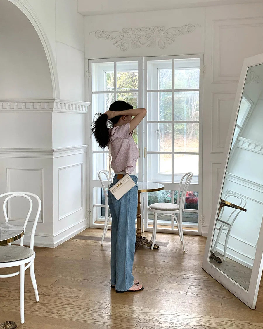 Infuse a touch of Korean chic into your wardrobe with this sweet, mixed-color design that exudes elegance and style.