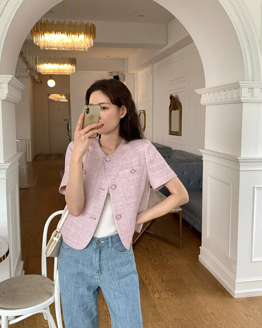 Perfect for summer, this loose-fitting, casual jacket is a versatile addition to any outfit, whether you're running errands or meeting friends.