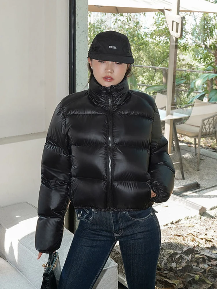 Elegant Solid Color Winter Jacket – Short Cozy Coat with Pockets