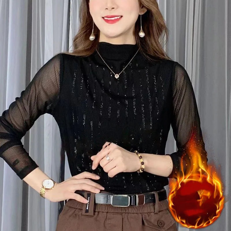 Street Style Two-Piece Layer – Long Sleeve Hollow Pullover for Women