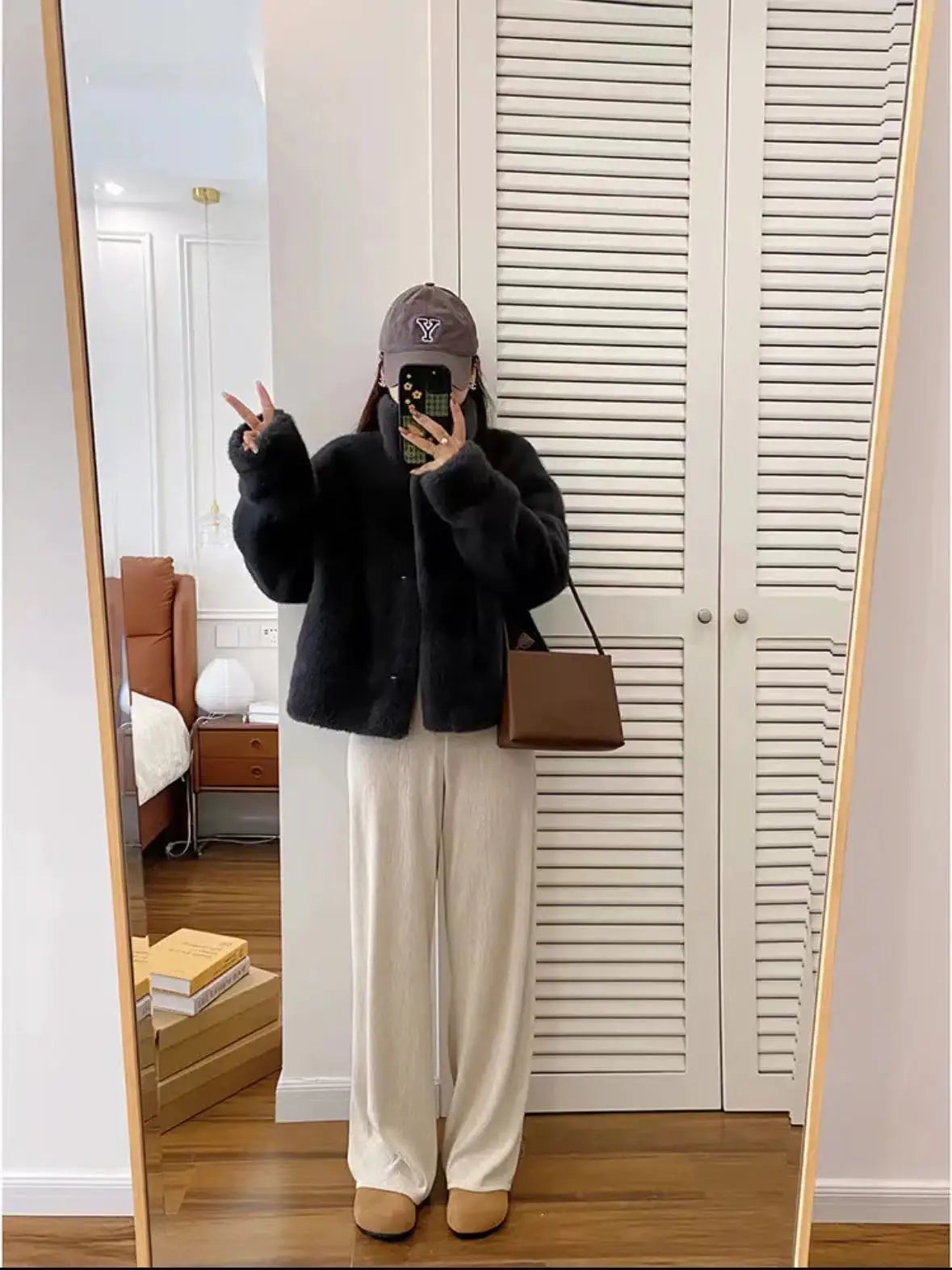 Your search for a piece that highlights your personality and elevates your style to a new level ends here! We present the Golden Mink Lined Faux Fur Coat. This coat is the ultimate solution for your days of fashion uncertainty, ensuring you feel prepared and elegant at all times. 🔑 With its soft and thick faux fur design, stand-up collar, and short cut, it offers the ideal combination of sophistication and modern comfort, ideal for any winter look. ✨