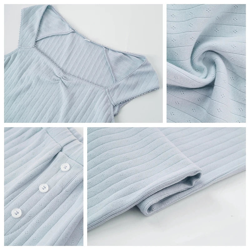 Featuring a sweet square collar and slim fit, the set exudes a charming fairycore aesthetic.