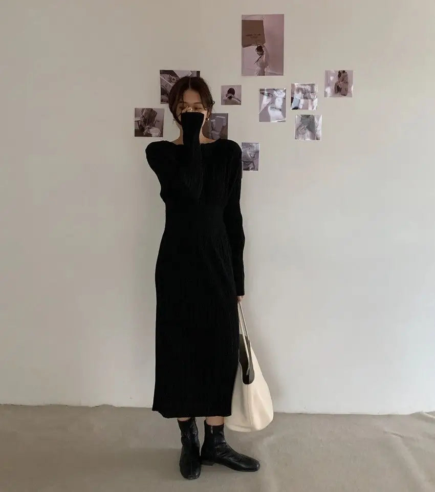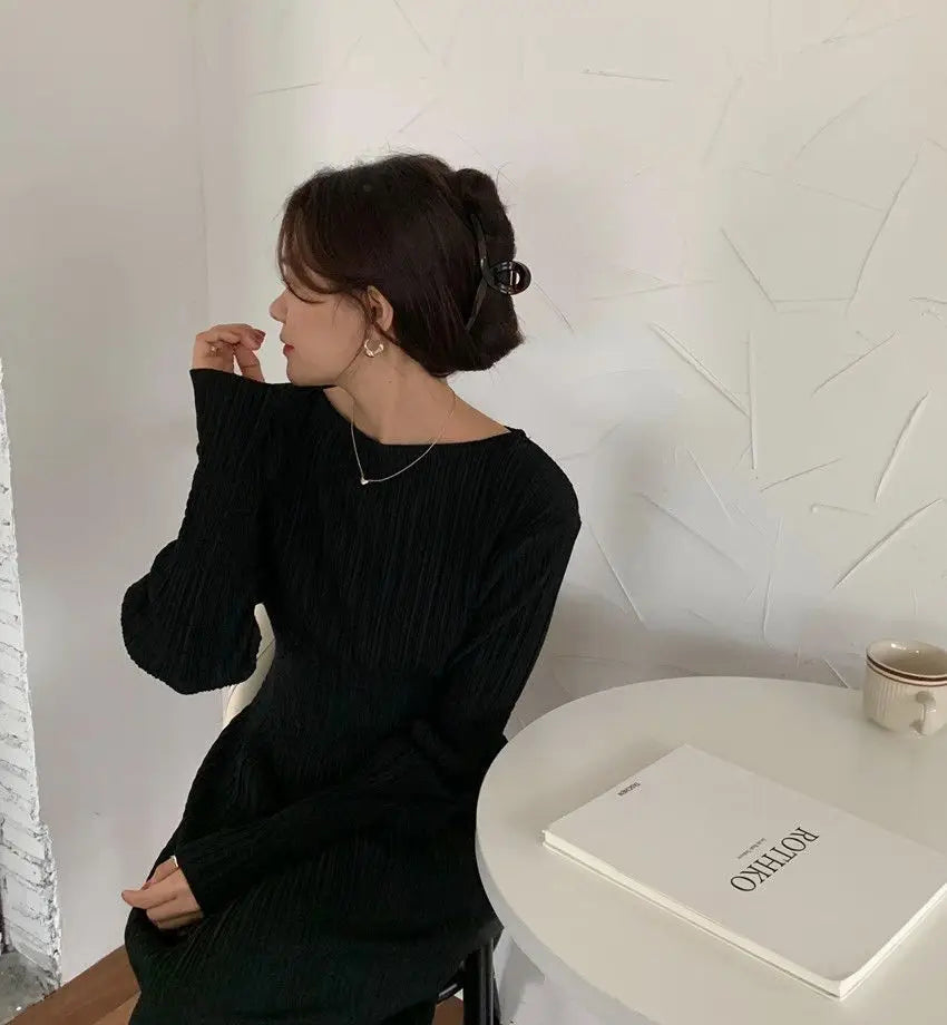 Introducing the solution to your fashion dilemmas: the Elegant Women’s Dress – Korean Chic Long Sleeve Pleated Skirt Dress. Inspired by Korean minimalist style, this dress is the key piece that will elevate your wardrobe. 🔑 Its unique pleated design and the flattering fit that cinches the waist create a sophisticated and modern look you'll love. ✨