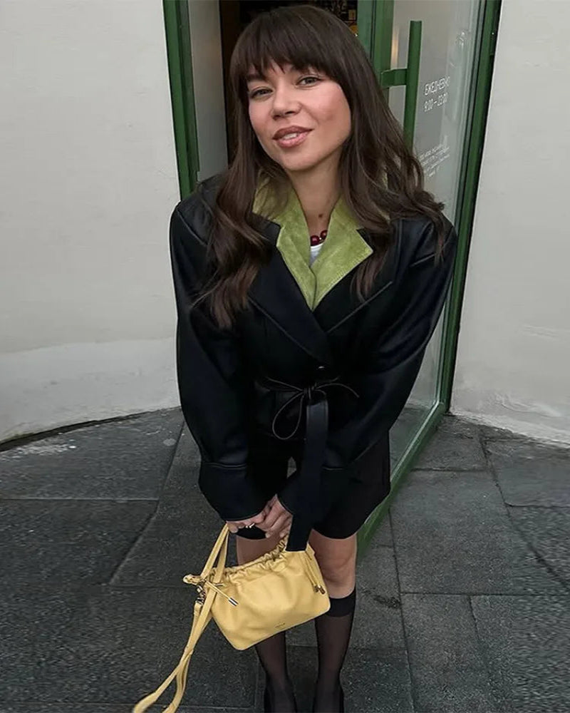 Touch of Edge: The short design and faux leather material give a touch of edginess and modernity, perfect for wearing on various occasions, from work to a night out.