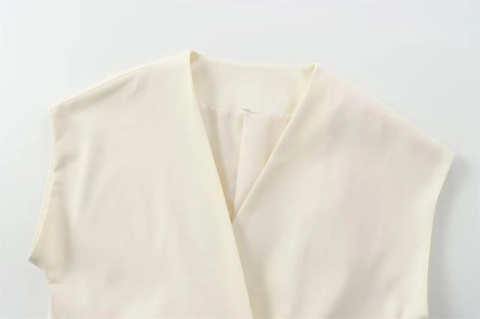 Style and Elegance: The V-neck design, the sleeveless cut, and the waist tie ensure a modern and elegant look, making the piece stand out.